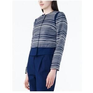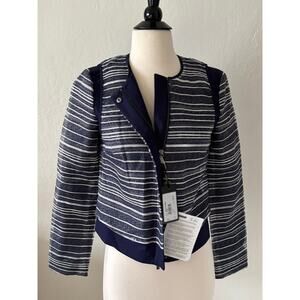 NWT Armani Exchange Navy Blue Layered Jacquard Jacket Size 2 Cotton Blend