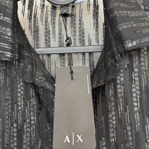 NEW WITH TAGS Armani Exchange Sheer Button-Up Shirt with Metallic Threads