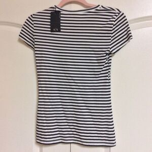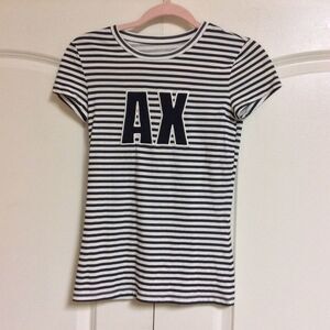 Y2K Armani Exchange Navy Blue White Stripe Logo Appliqué Short Sleeve Tee Shirt