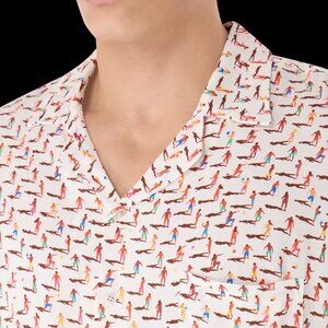 Make a bold, artistic statement with this limited edition camp collar shirt from Arrels Barcelona, featuring the exclusive Altinha print by renowned illustrator Malika Favre. Crafted for comfort and style, this shirt is a wearable work of art that blends vibrant design with modern tailoring.