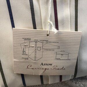 NWT Arrow Carriage Trade Men Dress Shirt Sze 15.5 Neck White Striped Button-Down