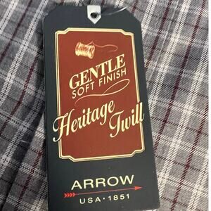 NWT Arrow Gray Checked Heritage Twill Wrinkle Free Soft Button Down Size L
