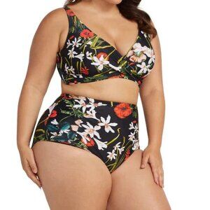 NWT Artesands Raphael High Waist Rouched Bikini Bottom in Wander Lost Size 14+