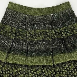 NWT Aryeh Green Pleated Herringbone Print Sweater Knit Skirt
