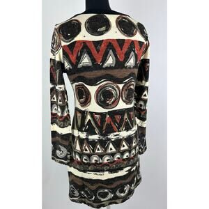 NWT Aryeh Size Medium Sweater Dress Abstract Orange Rust Midi Retro Boho Artsy