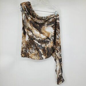 NWT Asher Fab'rik Kathleen Snake Reptile Print One Shoulder Cape Shirt Medium