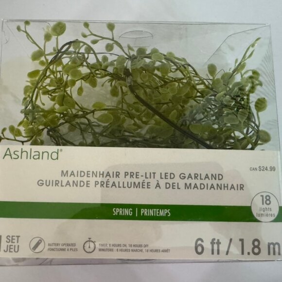 NWT Ashland Maidenhair Pre-Lit LED 6 Ft Garland- 18 Lights,Battery Operated