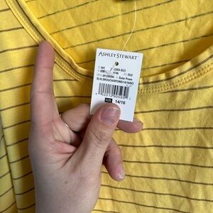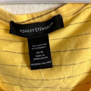 NWT Ashley Stewart, 14/16, yellow and silver striped rouche Stretcht side tank