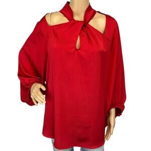NWT Ashley Stewart Satin Blouse Red Twist Neck Plus Size 14W/16W