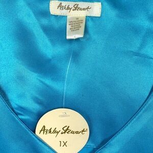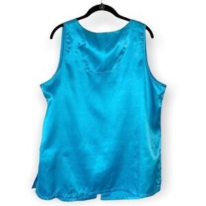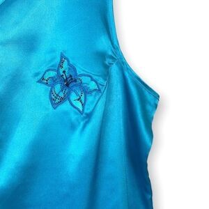 NWT Ashley Stewart Turquoise Blue Floral Embroidered Satin Sleeveless Top