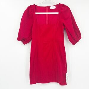 Asos Design Womens Party Going Out Corduroy Puff Sleeve Corset Mini Dress in Red. Size 2 Petite.