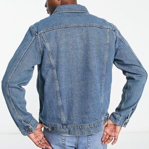 TAGS: Asos Design Unisex Regular Denim Trucker Mid Wash Denim Jean Jacket Side Pockets Spring Summer Year-round Casual Trendy Minimalist