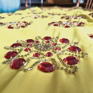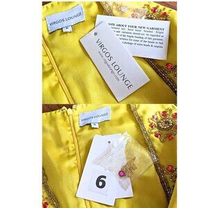 NWT Asos VIRGOS LOUNGE Daria Yellow Red Asymmetrical Embellished Midi Dress Sz 6