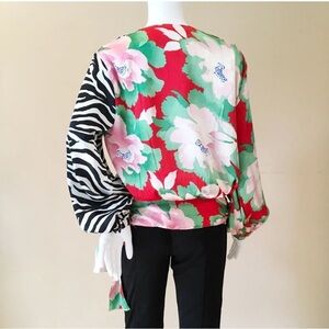 NWT Asos Womens Wrap Top Blouse Floral Zebra Long Sleeve V Neck Multi Size 6