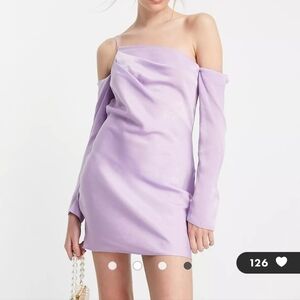 NWT Asos asymmetric satin mini dress with cold shoulder in mauve size 4