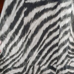 I'm absolutely loving this dress!! This is a zebra print mesh sheer Ruffle split in the front midi skirt. Has stretch. Sz 4.