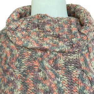 NWT Aspen Italy Wool Cowl Funnel Neck Cable Knit Sweater Sz L Space Dyed Ski-Aprés Chunky