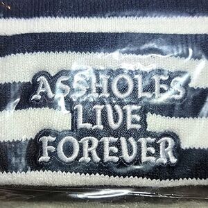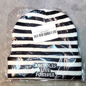 Brand NEW factory sealed Assholes Live Forever, ALF, Black & White Stripped Beanie with embroidered logo. Unisex. One size. Can be worn by all. Get it before it's gone. Only 1 at this price.