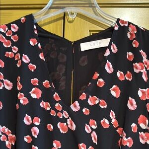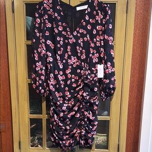 Chic floral black dress and pink floral pattern with ruched detailing. Beautiful Body Con styling. Perfect for a special or any occasion.