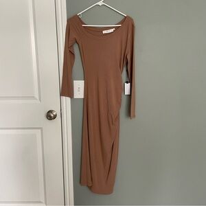 NWT Astr The Label Melina Midi Taupe Brown Dress | Size M
