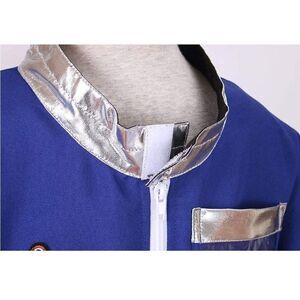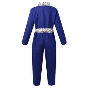 The Space Astronaut Costume comes with silver gloves and a shiny helmet.Transparent pockets on the left can hold reusable name-tag.Durable zipper closure on front allows your kids easy to put on/off.