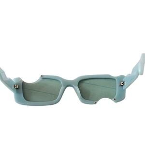 NWT Asymetrical Women Baby Blue Rectangular Cut Out Fashion Glasses