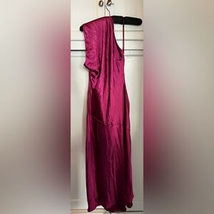 *NWT* Evana High Asymmetrical Neck Satin Slip Midi Dress. Turn heads with this stunning fuchsia halter neck cocktail dress. Perfect for any special occasion, its elegant design, vibrant color and fun twist to the classic satin silhouette make it a must-have in your wardrobe.