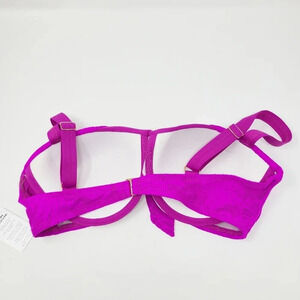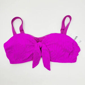 New with Tag Athena Sun Daze ruched tie front bikini top. Sweetheart neckline with tie front detail. Adjustable shoulder straps. Back hook and bar closure. Ruched bodice. Floral laser cut design. Lined.