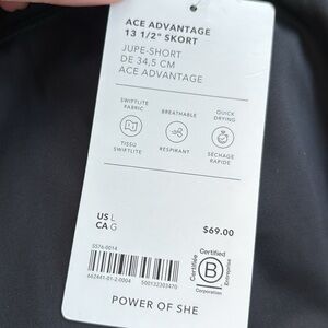 NWT Athleta Ace Advantage 13 1/2 Black Skort Size Large