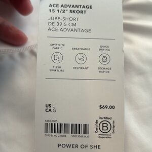 NWT Athleta Ace Advantage 15 1/2” White Skort Size Large.