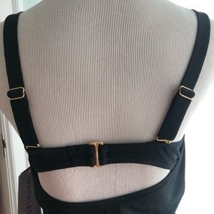 Never worn. In original packaging. Recycled H₂ECO fabric is smooth & sleek with powerful stretch; Hidden underwire design supports like your favorite bra; Recycled Nylon/Lycra; QUICK-DRYING; UPF 50+; LYCRA® XTRA LIFE™ SPANDEX; Ultra-resilient fabric snaps back like a pro & lasts 5 to 10X longer; Machine wash & line dry; Medium support for B-DD cups, mid-coverage neckline; Removable pads