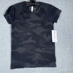 NWT Athleta Black Camo Momentum Tee Athletic Unstinkable Short Sleeve SizeXS S M