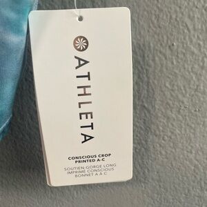 NWT Athleta Conscious Crop Printed A-C Solarize Chrome Blue Bra. Size X-Small