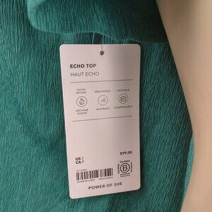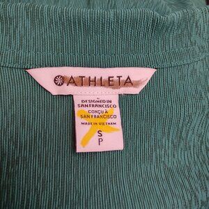 NWT Athleta Emerald Green heathered short sleeve button front Echo top Small