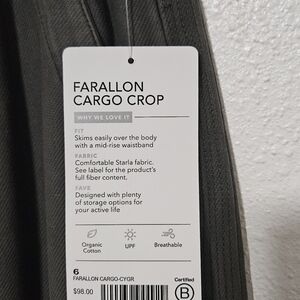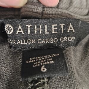 New with tags Athleta Farallon cargo crop pants size 6 see pics for verification of size measurements approximately flat lay waist 14 front rise 11 inseam 24 1/2