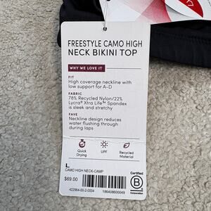 NWT Athleta Freestyle Black Gray Yellow Camo High Neck Bikini Top Size L