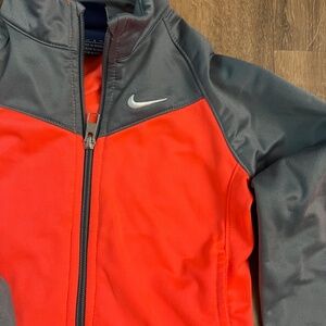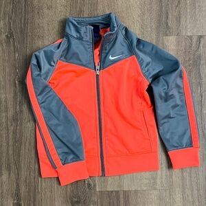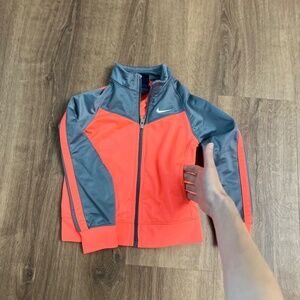 This is such a cute little bundle that you can wear together or separate for plenty of sporty options. Athleta printed Chit Chat capri in a gray/black camo. These are brand new with tags and come with a cute little hair tie/bracelet on the tag. The jacket is from Nike and it was a little difficult to photograph the color on the jacket. The true color is a bit more bright salmon rather than true orange.