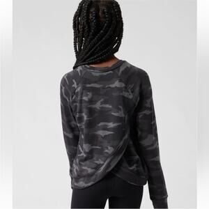 NWT Athleta Girl Cozy Cross Your Fingers Sweatshirt Black/Gray Camo
