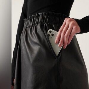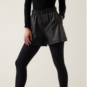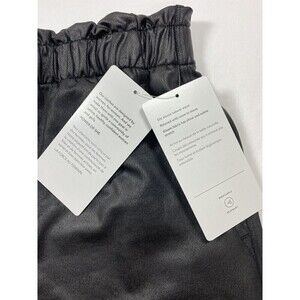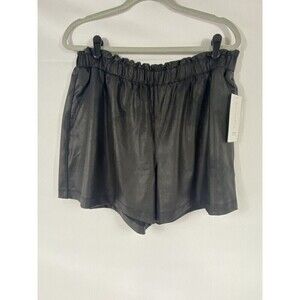 NWT Athleta Gleam Shorts Black Large Relaxed Pull On Elastic Waist Faux Leather