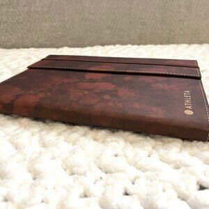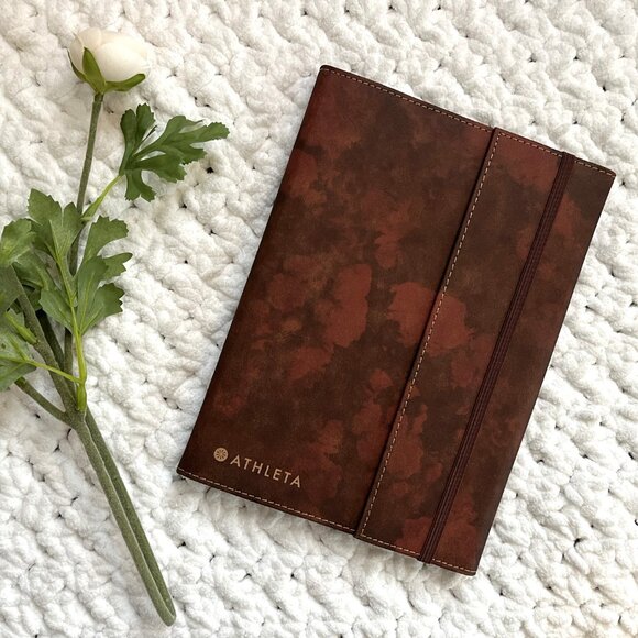 Removeable blank spiral notebook. Hardcover exterior feels like a stiff thin cardboard material. Flap and elastic strap closure. "Power of She" printed on inside. Interior slide pockets and pen holder loop.