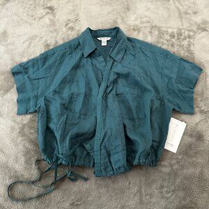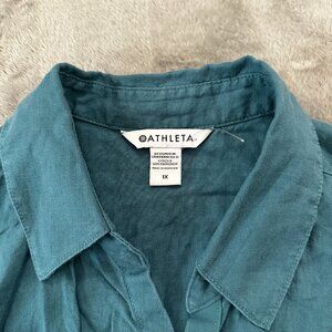 NWT Athleta Playa Top 100% Linen Shirt Women's size 1X 1XL Teal Blue