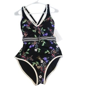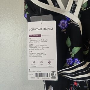 NWT Athleta Printed Floral Gold Coast One Piece Belted Swimsuit
