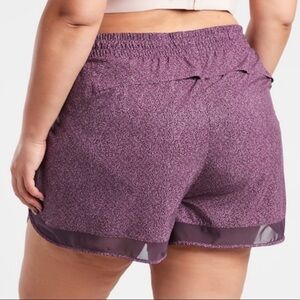NWT Athleta printed mesh racer run shorts in violet static. Size 1X. 18 3/4” waist across top laid flat. 13 1/4” rise. 4” inseam.