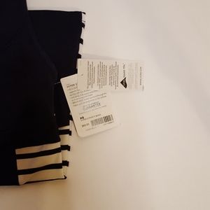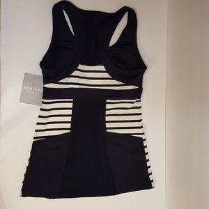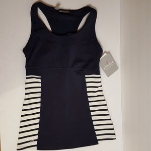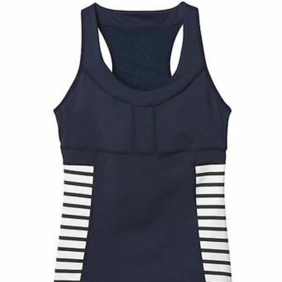 NWT Women's size XS Athleta Hyper Stripe tank. Item is navy blue with white stripes and has built in sports bra.