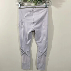 NWT Athleta Ultimate Stash Pocket Ignite 7/8 Tight Lavender in size XS. Excellent new condition. Sits at the natural waist, fabric is sleek with supportive compression, stay-put waistband with internal draw cord won’t roll. Please see photos for approximate measurements and details. Item may show a difference in color based upon photography and perception. Photos are part of the description, as everyone’s level of condition may vary. From smoke free and pet free home. All packages are shipped the same or next business day.
