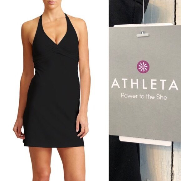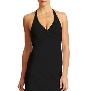 NWT Athleta Women's Black Tara Halter Swim V-Neck Dress Size 38D/DD