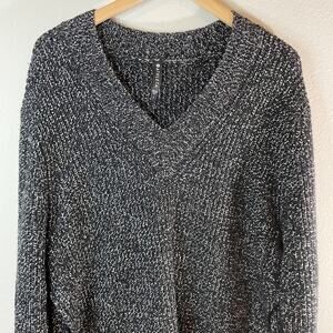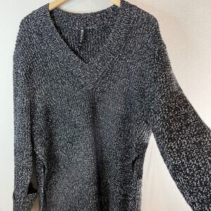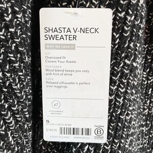 NWT Athleta Women's Shasta V-Neck Sweater Wool Blend Hi Low Black Marl Small New