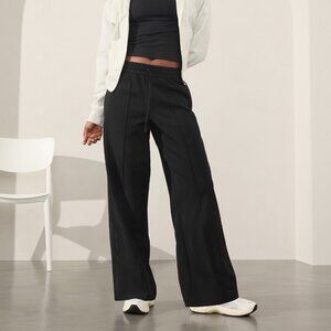 Fit is relaxed & roomy, wide leg. Satin trim detailing down the side of the legs. Fabric is breathable, quick drying, and wrinkle resistant.