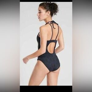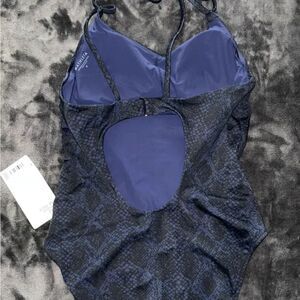 NWT Athleta navy snakeskin keyhole one piece swimsuit small