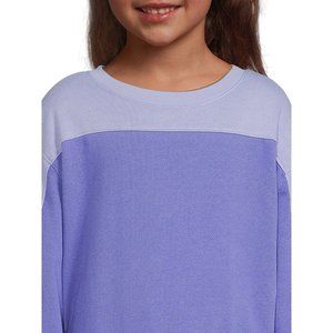 Sweatshirt: Relaxed fit; semi-cropped length; pullover style; crewneck; long sleeves with ribbed cuffs; ribbed hem; colorblocked design; super soft